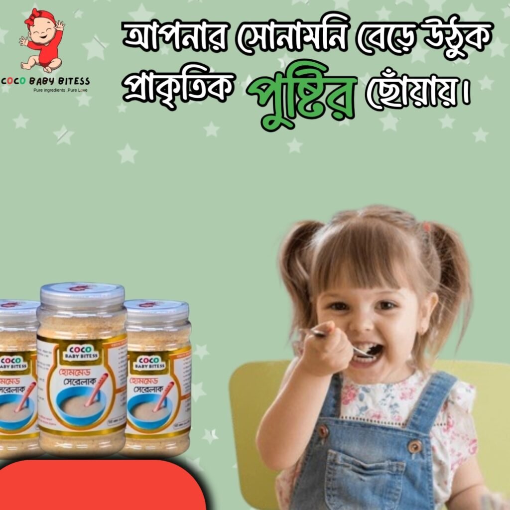 এই হোমমেড সেরেলাকটিতে রয়েছে। প্রোটিন,ফাইবার,ক্যালসিয়াম, পটাশিয়াম, ম্যাগনেসিয়াম, ফসফরাস, জিংক, আয়রন, ফ্যাটি অ্যাসিড, ওমেগা ৩ সহ প্রয়োজনীয় সকল ধরনের ভিটামিন। এই সেরেলাকটি একজন বাচ্চার প্রতিদিনের ৭০ থেকে ৯০ ভাগ পুষ্টির সঠিক চাহিদা পূরণ করতে সক্ষম।